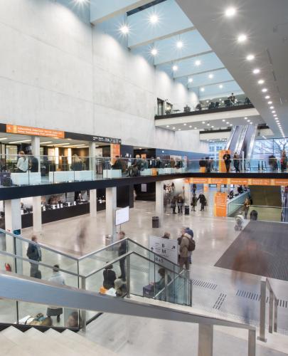 - In der unteren Ebene flexible Trennwände, die bis zu 8 Konferenzsäle für 400 - 3000 Pax und /oder Ausstellungsfläche bieten